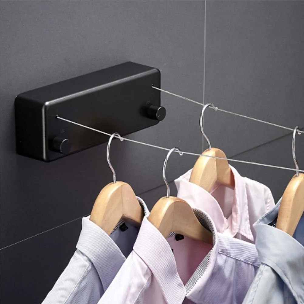Retractable Dual Lines Stainless Steel Simple Wall Mounted Heavy Duty Clothes Line with Adjustable Rope