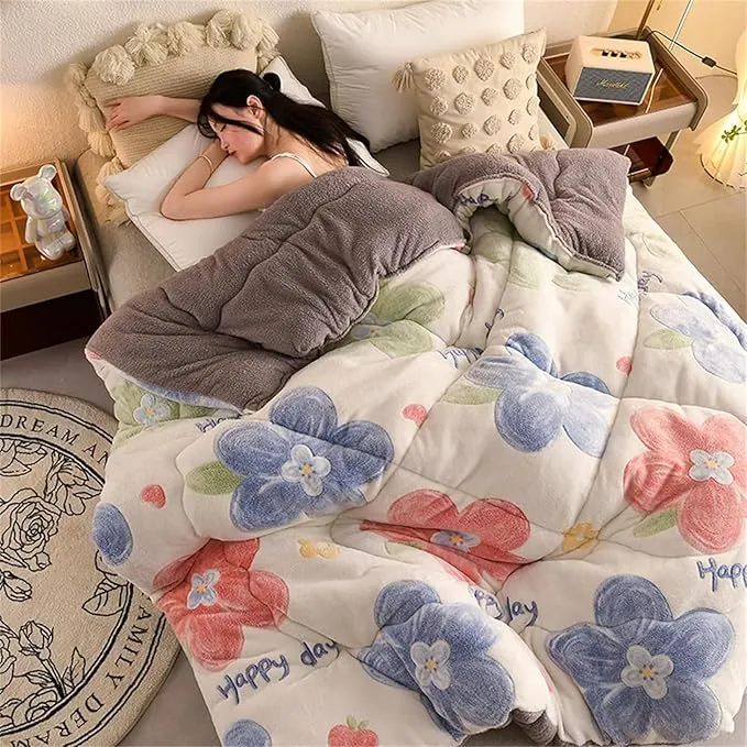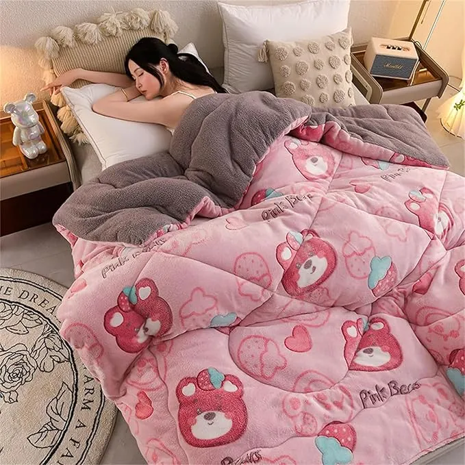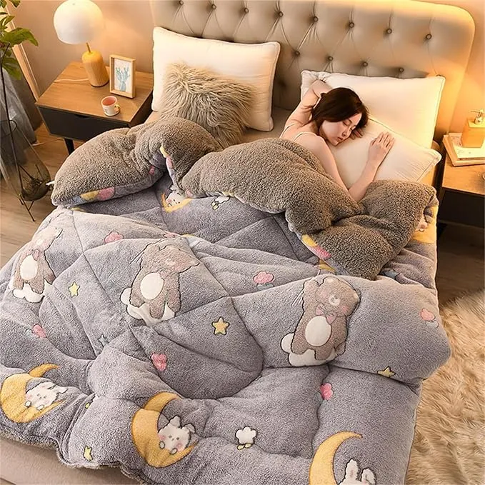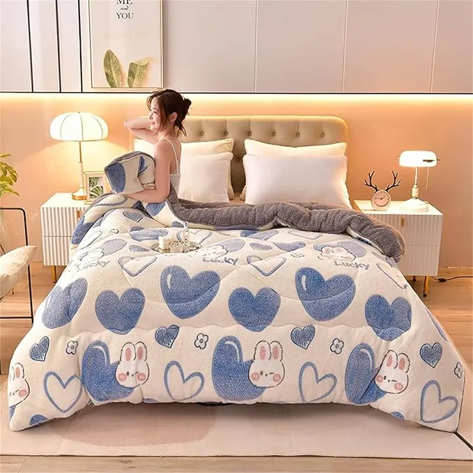 Fluffy Cashmere Quilt, Thicken Winter Comforter, Lamb Velvet Core, Plush Winter Blanket