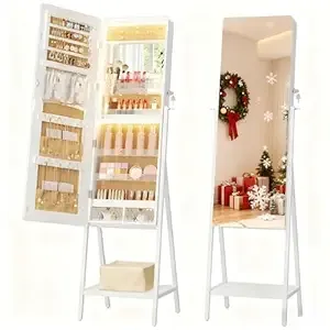 [3-in-1 Jewelry Cabinet] Enjoying the triple benefits of a jewelry organizer, full-length mirror, and vanity mirror will give you a lot of fun dressing up. HD full-length mirror jewelry cabinet offers you a head-to-toe view of your outfit in real image and you can store all jewelry in order with this jewelry organizer stand