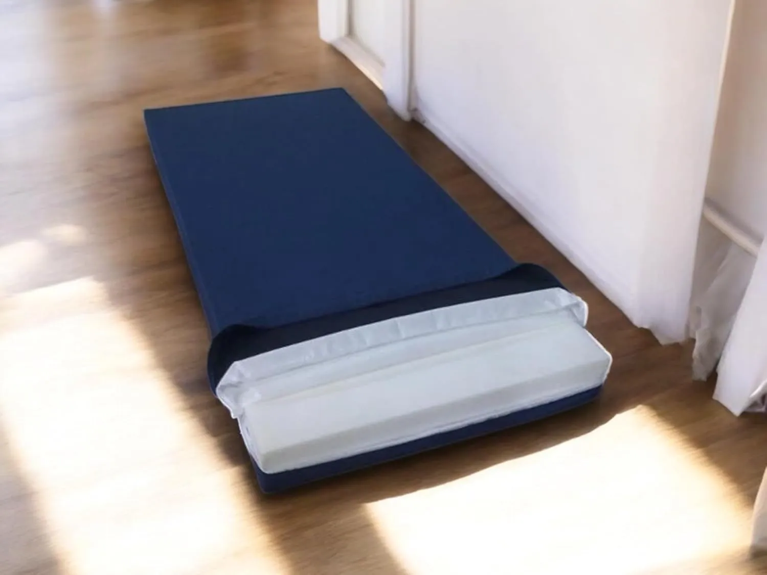 Brand new floor futon mattress, made in India. Fabric material: 100% polyester. The cover is not allowed to be removed for washing.