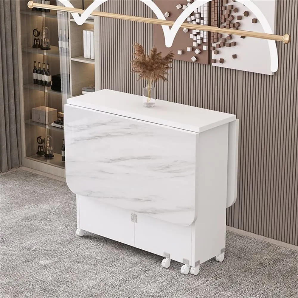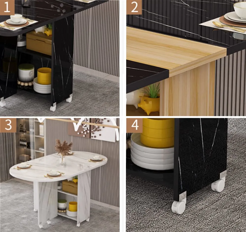 Multipurpose Table Easily folded and extended to meet your different needs. As a dining table it perfect fit for family of 4-6 when totally extended. Just folding one tabletop, it could as an office desk placed your computer, books, camera on the tabletop, or even as a entryway table when fully folded.