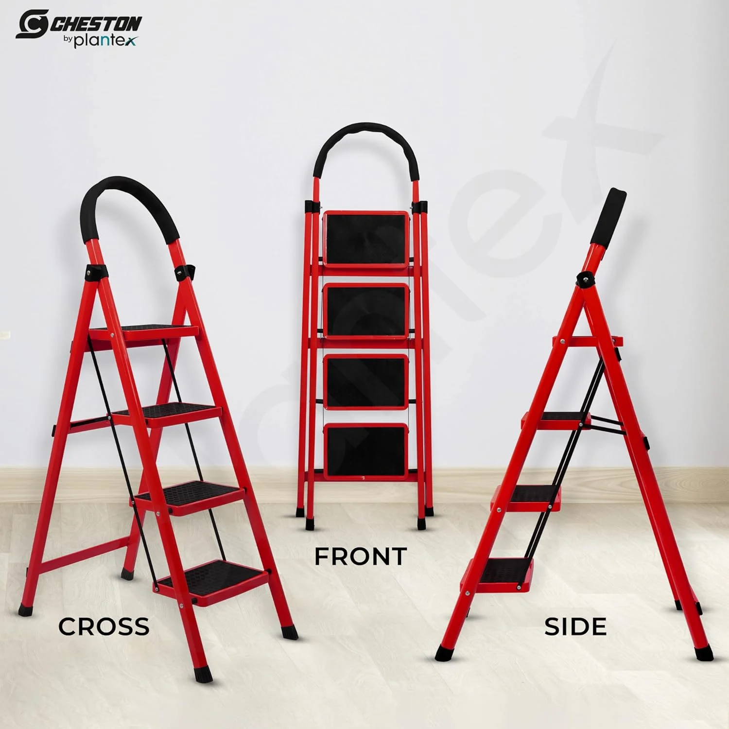 ๐๐๐ญ๐๐ซ๐ข๐๐ฅ: Plantex folding 4 step ladder is made from high strength durable GI Steel pipe which is coated 7 times with processed powder. Ladder for home is super secure and stable.