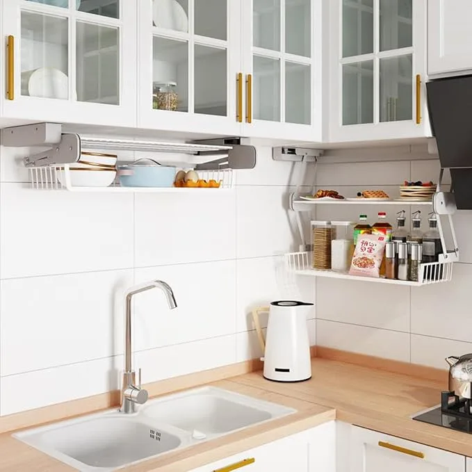 Maximize every inch of your kitchen’s vertical storage with the Professional Pull-Down Shelf System. Designed to solve the dead space problem in high upper cabinets, this innovative hardware allows you to bring your items down to eye level with a single, effortless motion. Whether you are organizing heavy spice jars, stacks of dinnerware, or pantry staples, this system eliminates the need for unstable step stools, making your kitchen safer and more accessible for everyone.