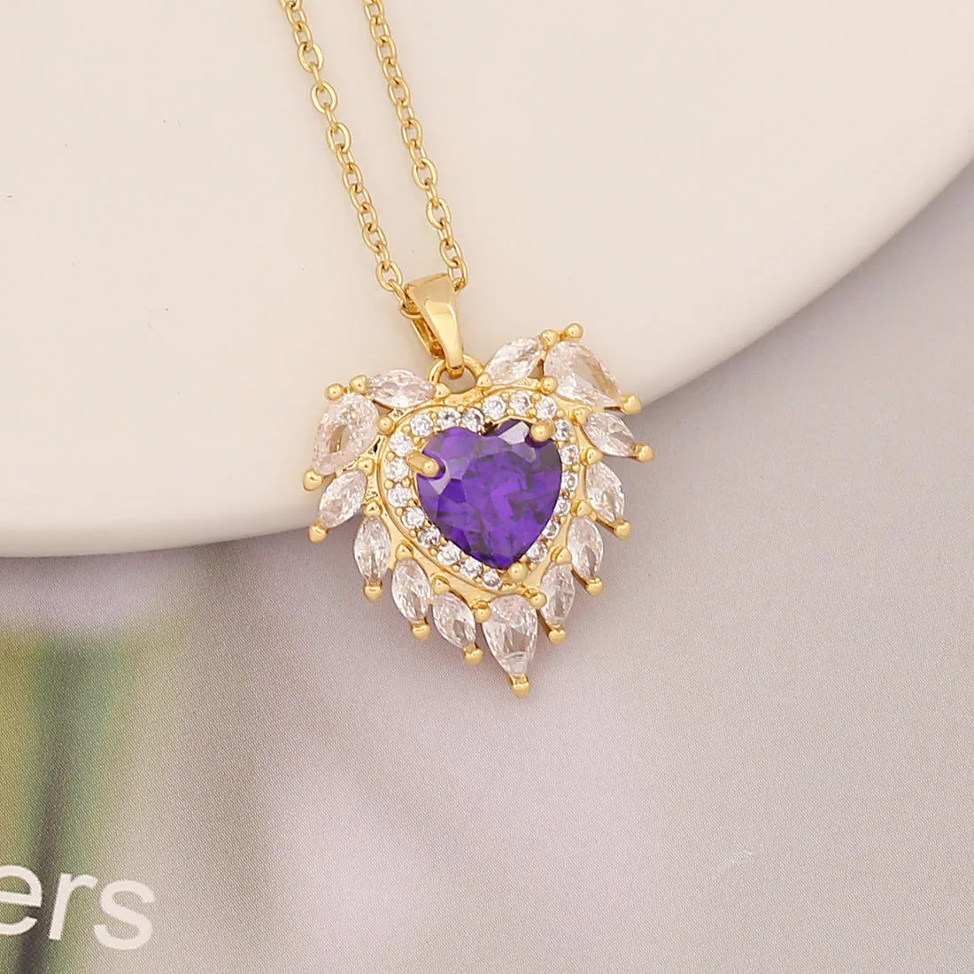 Women Fashion Jewelry Purple Style Brass Necklace
