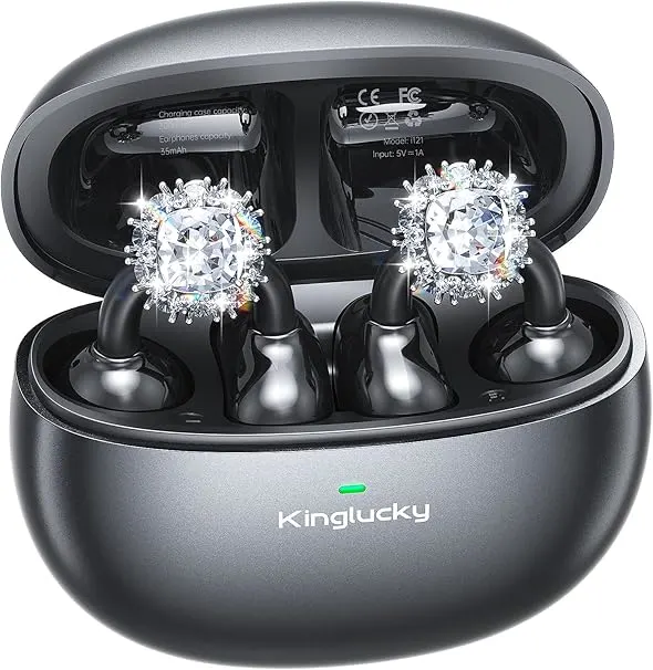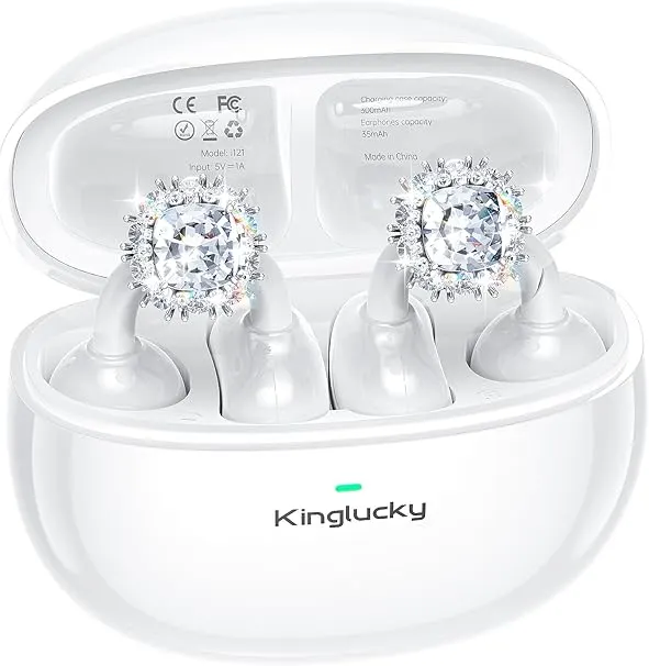 These elegant wireless earbuds are designed for those who love a blend of fashion and technology. Featuring a crystal-inspired decorative design, they add a premium, jewelry-like touch while delivering a comfortable in-ear fit. The smooth, compact charging case complements the earbuds perfectly, making them easy to carry in your pocket or bag for everyday use. Multiple color options allow you to match them with your personal style effortlessly.