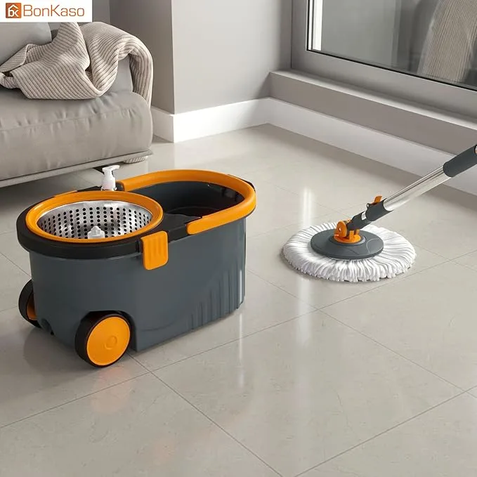 Make everyday floor cleaning faster, easier, and more hygienic with this advanced spin-wash mop and bucket set, designed to deliver powerful cleaning with minimal effort. The system combines a high-absorption microfiber mop head with a smart wringer bucket, allowing you to clean, rinse, and dry in one smooth workflow—without touching dirty water.