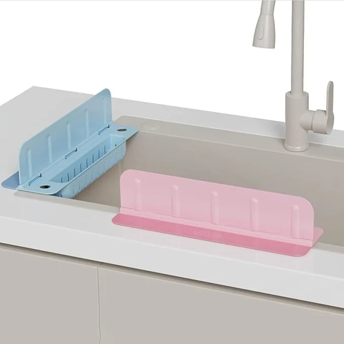 The versatility of this splash guard extends beyond just catching drips; its wide, flat wings serve as a convenient storage shelf for your dish soap, sponges, and hand scrubbers. The textured surface prevents these items from sliding off, while the elevated ridges allow air to circulate underneath them, helping your sponges dry faster and stay hygienic. It is a sleek, low-profile addition that fits seamlessly into modern kitchens, laundry rooms, or even RV bathrooms where space and cleanliness are top priorities.